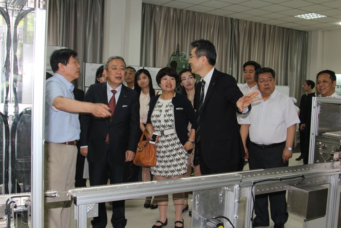 6月6日下午,欧姆龙株式会社会长立石文雄,欧姆龙(中国)有限公司董事兼总经理土居公司,欧姆龙本社董事、GMI本部长吉川净,欧姆龙(中国)有限公司副总经理、欧姆龙本社人才开发部部长陈建龙等一行来我院访问交流,我院党委书记邓志辉、院长崔岩、副院长王晓江、电气工程学院院长卢庆林与来宾在崇文楼九楼会议室进行了座谈。