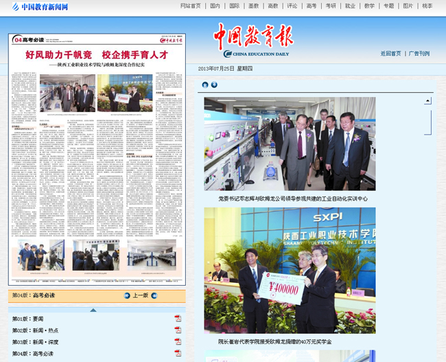 7月25日,《中国教育报》在第4版“高考必读”栏目刊发了《好风助力千帆竞,校企携手育人才》,该文从合作缘起、扎实推进、硕果累累、未来展望四个部分,系统地展示了我院与欧姆龙公司深度合作育人的全过程,引起社会和媒体的广泛关注。