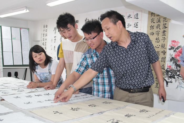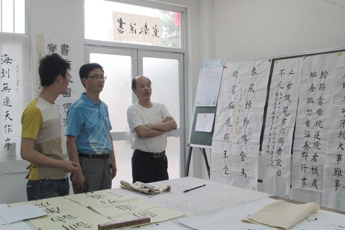 师生共同鉴赏书法作品