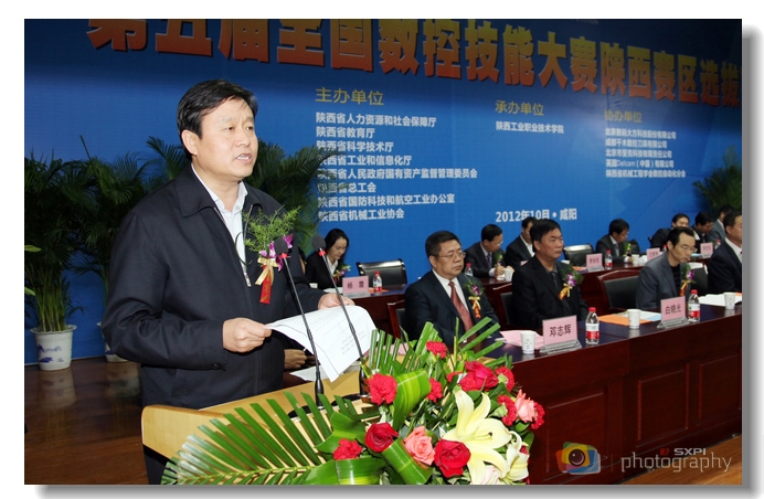 咸阳市人民政府副市长陈俊锋在讲话中指出,近年来,咸阳市委市政府认真贯彻落实中央文件精神,通过各种途径大力发展职业教育,高技能人才培养工作取得了显著成效。即将开幕的数控大赛为全省数控行业精英们搭建了一个交流提高、展示技能水平的大舞台,必将进一步充分调动全省数控行业技术工人学技术、学技能的积极性,对提高全省劳动者的职业技能与素养、推动职业技能培训和促进就业都具有十分重要的意义。咸阳市政府将以此为契机进一步建立健全职业技能培训体系,不断提升工作水平,努力为全市经济社会发展提供人才支撑。