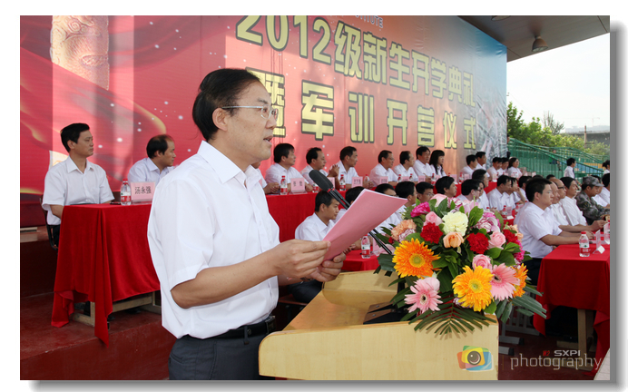 王天哲同志宣布军训编制及任命,在校生和新生代表先后发言。邓志辉同志宣布2012级新生军训开营。