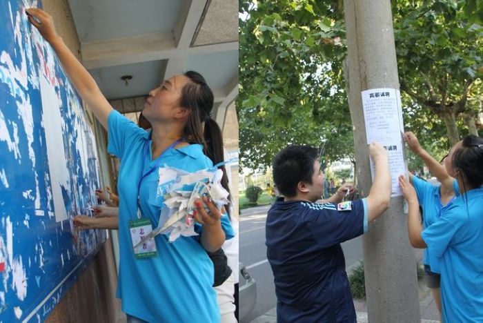负责南区野广告清理的李鹏博感慨地说:“校园内无处不在的野广告就像‘牛皮癣’一样,即违规又不美观,对学生的生活环境影响很大。一张小广告的粘贴仅需几秒钟,可是要彻底清除却要10多分钟,虽然清理起来费时费力,但是能为干净整洁的校园文化环境做出自己的贡献,我们都很乐意参加这样的志愿活动!”