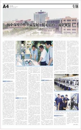 7月23日,《中国工业报》第四版以《校企深度合作共赢发展 精心培育一流企业员工》为题,报道了我院与欧姆龙公司订单培养学生,反映我院以服务学生就业为导向,以教育教学质量提升为核心,以促进学生持续发展为目标的“订单式”人才培养模式。