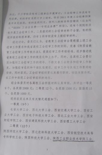 据悉,本次高校工会财务工作会议共评出2011年度陕西省“高校工会经审工作”一等奖9个,二等奖12个,鼓励奖15个。