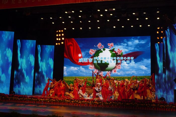 6月5日下午,我院大学生艺术团受邀参加了在彩虹俱乐部举行的咸阳市首届“十佳环保爱心使者”表彰暨纪念“六·五”世界环境日“绿色呼唤”文艺汇演活动。千军昌、赵庆明、李效民、卫华、陈俊锋、唐利如、严宪文、罗志勇等市上领导和省环保厅副厅长王新荣、市委秘书长庞少波为“十佳环保爱心使者”颁奖,并观看了文艺汇演。