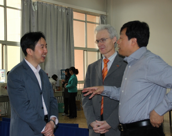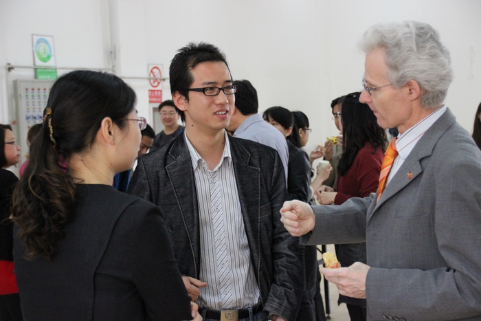 王津副院长在培训现场与胡格教授就培训内容进行交流
