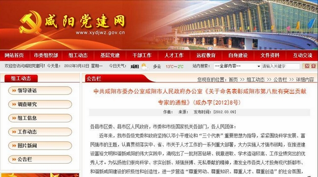近年来,在推进建设富裕文明和谐新咸阳的伟大实践中,涌现出了一批刻苦钻研、锐意进取、学术造诣较高、工作业绩突出的优秀人才。为了进一步营造“尊重劳动、尊重知识、尊重人才、尊重创造”的社会氛围,市委、市政府命名并通报表彰65名同志为第八批有突出贡献专家。