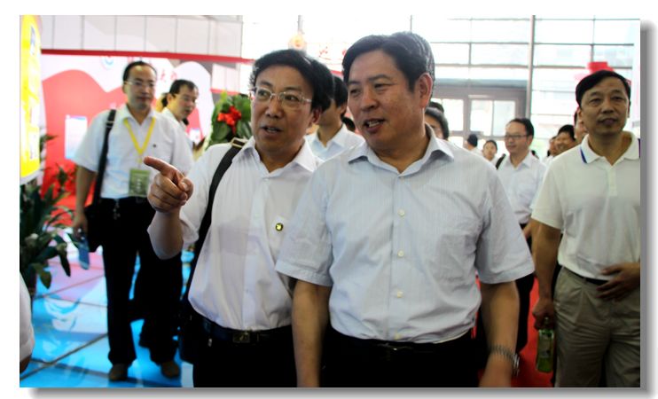 省教育厅厅长杨希文、教育工委副书记郝利生、教育厅副厅长郭立宏与我院崔岩院长、王天哲副书记在展会合影