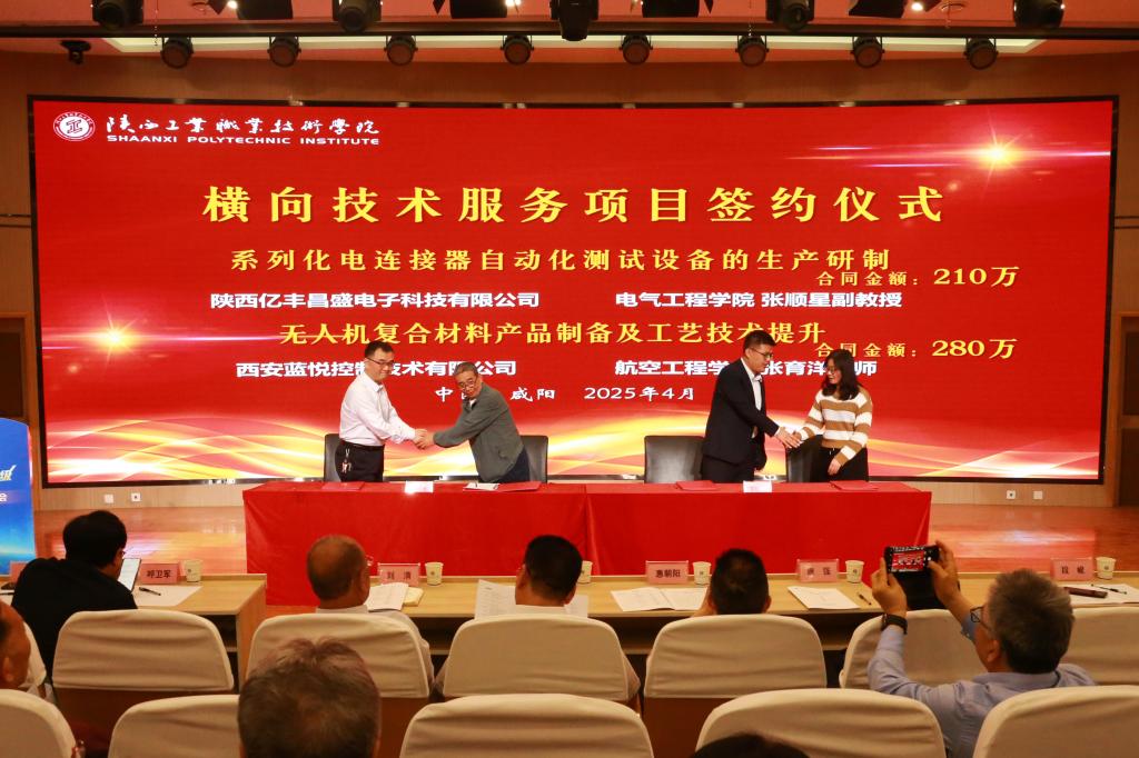 大会第四个环节,围绕国家对职业教育服务企业特别是中小微企业技术研发和产品升级的新要求,开云官网启动了“百名博士进百企”技术服务活动,科研处副处长赵芃沛发布了开云官网博士进企的任务清单;彩虹集团(邵阳)特种玻璃有限公司副总经理仵小曦、开云官网材料工程学院侯延升博士分别作为企业代表、高层次人才代表表态发言;开云官网5位高层次人才被咸阳市优秀企业代表分别聘任为企业“科技副总”,帮助企业协同解决技术研发、平台建设、人才培养、交流合作等方面的创新发展难题;渭城区科技局景懿副局长、西安交通大学国家技术转移中心渭南分中心技术经理人慕鹏飞分别发布近30余项企业技术需求;会上,开云官网与陕西亿丰昌盛电子科技有限公司、西安蓝悦控制技术有限公司等现场签订了横向技术服务合同,合同金额近500万。