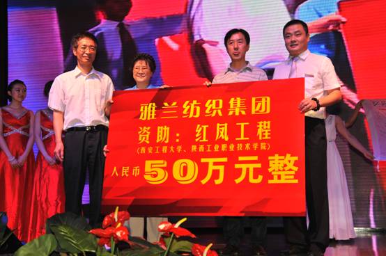 活动现场,任勇总裁还代表集团全体员工现场捐款50万元,用于资助我院及西安工程大学的贫困女大学生完成学业。王津副院长代表我院接受捐赠,为雅兰取得骄人的业绩表示祝贺,并对集团对我院的支持、对大学生的资助表示感谢,希望校企双方在产品开发、人才培养上继续合作。