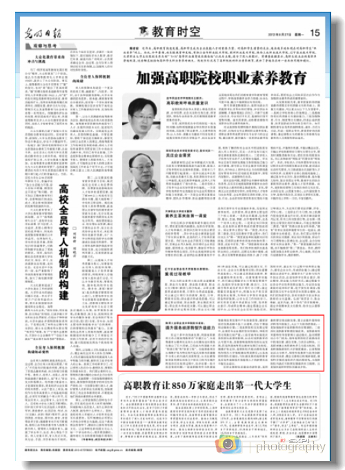 8月27日,《光明日报》以《加强高职院校职业素养教育》为题对我院崔岩院长进行了访谈。