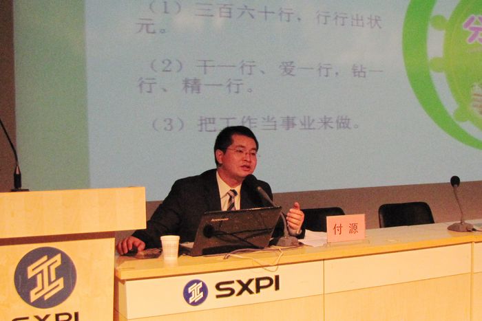 10月23日下午,我院邀请咸阳亿龙地产营销经理、西安博朗置业有限公司营销总监付源为400余名学生作题为《轻松就业、快乐成长》的主题讲座。