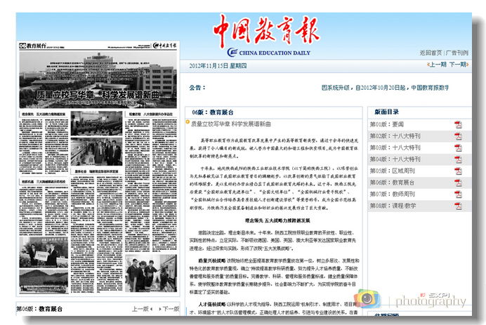 11月15日,《中国教育报》以《质量立校写华章,科学发展谱新曲》为题,采用正版图文的形式聚焦我院十年高职教育的改革发展成就。