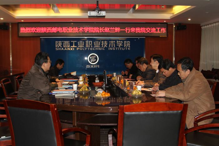 12月18日上午,陕西邮电职业技术学院院长赵兰畔、副院长宋维岳、教务处处长张浩、学生处处长冯公里、总务处处长刘虎林一行5人来我院交流工作。