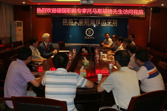 7月30日,德国知名职教专家、德国巴符州教师继续教育学院高级培训师、巴符州郝搏职业学院机电专业主任、未来学习教育出版社社长托马斯·胡格与巴符州教师继续教育学院驻北京办事处主任朱稼一行2人来我院进行访问。