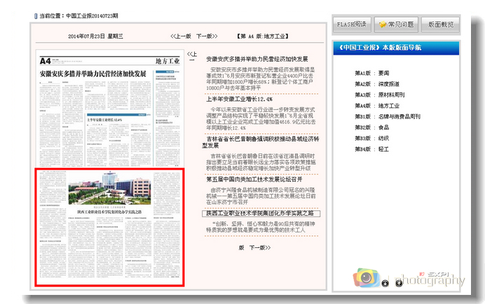 7月23日,《中国工业报》以《校企合作兴职教、人才培养结硕果,陕西工业职业技术学院集团化办学实践之路》为题报道我院集团化办学的发展和成就。