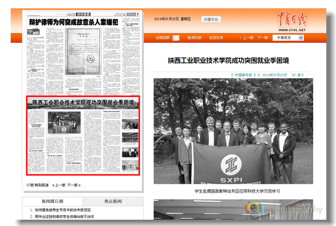 7月25日,《中国青年报》以《陕西工业职业技术学院成功突围就业季困境》为题,全景展现我院毕业生就业工作的成就。