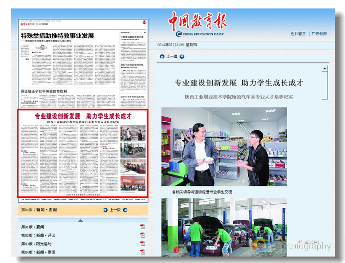 7月31日,《中国教育报》以《专业建设创新发展,助力学生成长成才——陕西工业职业技术学院物流汽车类专业人才培养纪实》为题,图文报道我院实施内涵发展战略,服务物流汽车及电子商务产业发展。