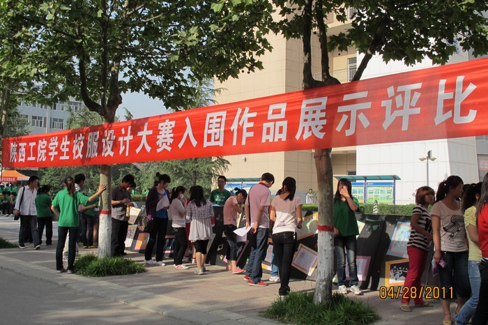 4月28日下午,服装艺术学院承办的开云官网第六届技能竞赛月的大赛项目“陕西工院学生校服设计大赛”入围作品公开展示评选活动在成才大道举行。