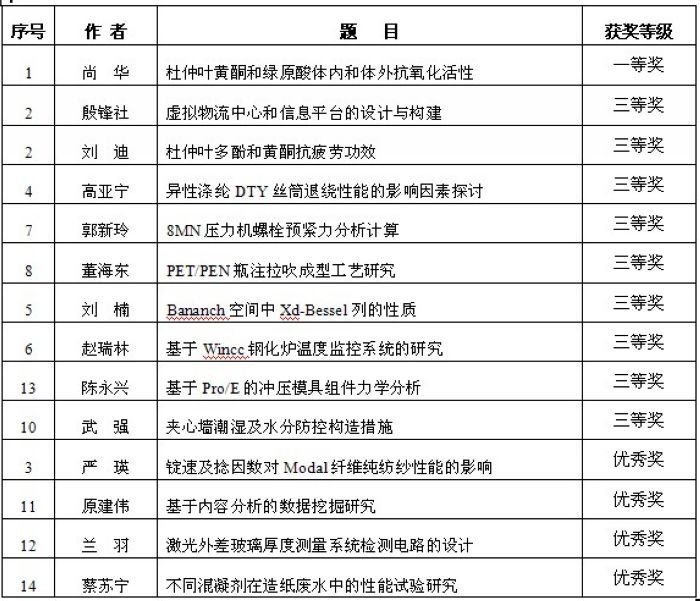 近日,根据咸阳市人民政府《关于表彰咸阳市第六届自然科学优秀学术论文的通报》(咸政函[2013]36号文件),我院申报的14篇自然科学论文分获咸阳市第六届自然科学优秀论文一等奖、三等奖及优秀奖,其中尚华教授撰写的“...